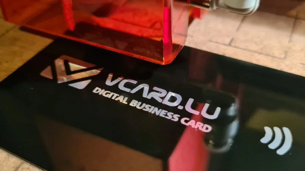 Pour nos clients vCard.luNous avons gravé des cartes de visite en métal pour une entreprise avec son logo et son nom, ainsi que les données de chaque employé pour chaque carte.